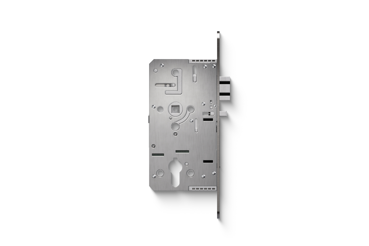 Das Schloss wird unauffällig im Türblatt integriert. Dadurch bleibt das Design von Türgriff und Beschlägen vollständig erhalten. Da die Kommunikation über Funk erfolgt, ist keine zusätzliche Verkabelung erforderlich – ideal für Nachrüstungen.