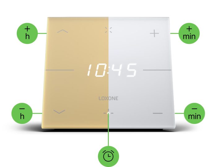Das Loxone Touch Nightlight Air ist ein Nachtlicht mit integriertem Wecker und sieben Tastpunkten zur Bedienung der wichtigsten Funktionen eines Raumes. Es vereint Benutzerfreundlichkeit mit einem architekturfreundlichen, klaren Design. Dadurch passt es ideal auf den Nachttisch und fügt sich ebenso auf Schreibtischen, in Regalen und an vielen weiteren Orten perfekt ein.